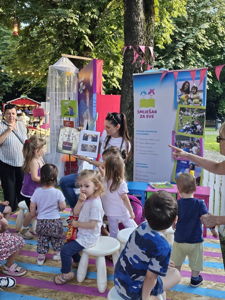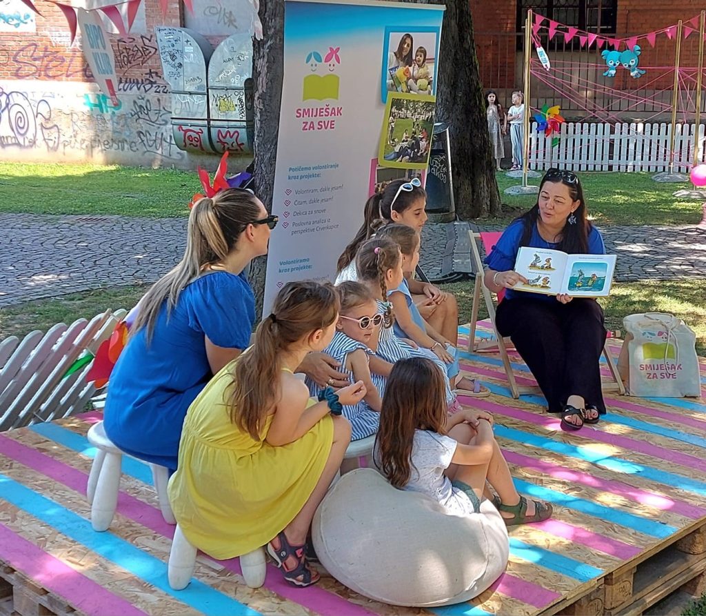 Kako prići djetetu s teškoćama u razvoju, na koji način uspostaviti kontakt i motivirati ga na slušanje priče, koju priču odabrati i kojim intenzitetom čitati — sve odgovore na ta pitanja mogli su danas čuti tete i stričeki pričalice iz Smiješka za sve od ugledne defektologinje Vande Kos Jerković koja je za njih vodila radionicu “Osnaživanje volontera za čitanje priča djeci s teškoćama u razvoju.”